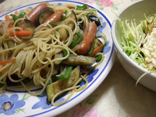 ナポリタンとキャベツの千切り