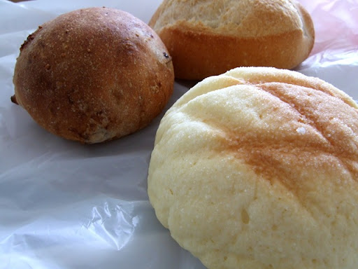 麦芽パン、ミニフランスパン、メロンパン。